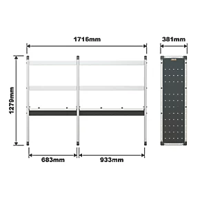 Easy to fit Universal Trade Van Racking double unit. Provides a lightweight, strong and flexible metal solution for effectively storing and organising power tools and components. Adjustable shelf height.