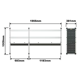 Easy to fit Universal Trade Van Racking double unit. Provides a lightweight, strong and flexible metal solution for effectively storing and organising power tools and components. Adjustable shelf height.