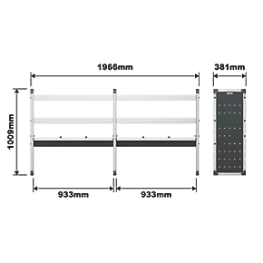 Easy to fit Universal Trade Van Racking double unit. Provides a lightweight, strong and flexible metal solution for effectively storing and organising power tools and components. Adjustable shelf height.
