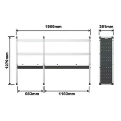 Easy to fit Universal Trade Van Racking double unit. Provides a lightweight, strong and flexible metal solution for effectively storing and organising power tools and components. Adjustable shelf height.