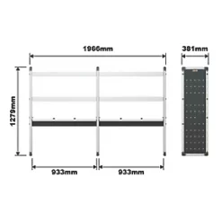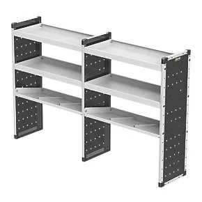 Easy to fit Universal Trade Van Racking double unit. Provides a lightweight, strong and flexible metal solution for effectively storing and organising power tools and components. Adjustable shelf height.