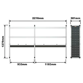 Easy to fit Universal Trade Van Racking double unit. Provides a lightweight, strong and flexible metal solution for effectively storing and organising power tools and components. Adjustable shelf height.